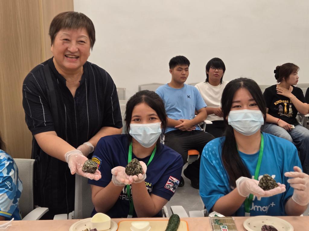 活动首个环节为中国饭团与紫菜包饭制作,这不仅是一场美食体验,更是一堂生动的劳动教育实践课。在蒋海娇老师的细致指导下,全体师生分组协作,从食材准备、饭团捏制、紫菜包饭卷制,每一个步骤都亲力亲为。过程中,大家在动手劳动里直观感受 “从谷物到美食” 的转化,深刻体会到每一份食物背后都凝聚着劳动者的汗水,真正理解粮食来之不易。这种沉浸式的劳动实践,不仅进一步筑牢了师生珍惜粮食的意识,更让大家在协作中学会分工配合,提升了动手能力。