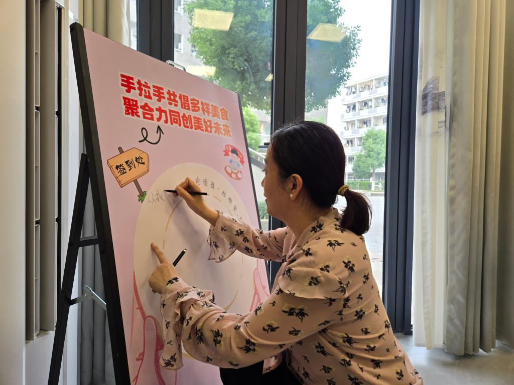 参与人员在写有“珍惜每一粒粮食,践行光盘”的展板前,领导率先提笔签名,师生代表紧随其后,也写下对“拒绝浪费、光盘用餐” 的坚定承诺。学生代表徐志鹏表示:“今天制作美食时体会到劳动的辛苦,签署承诺书让我更清楚要珍惜每一份食物。”这一环节将活动中 “尊重劳动、珍惜粮食”的认知,转化为实实在在的行动约定,让爱粮节粮不再停留在理念层面,而是成为师生们日常用餐的自觉习惯,为守护粮食安全注入了鲜活的实践力量。