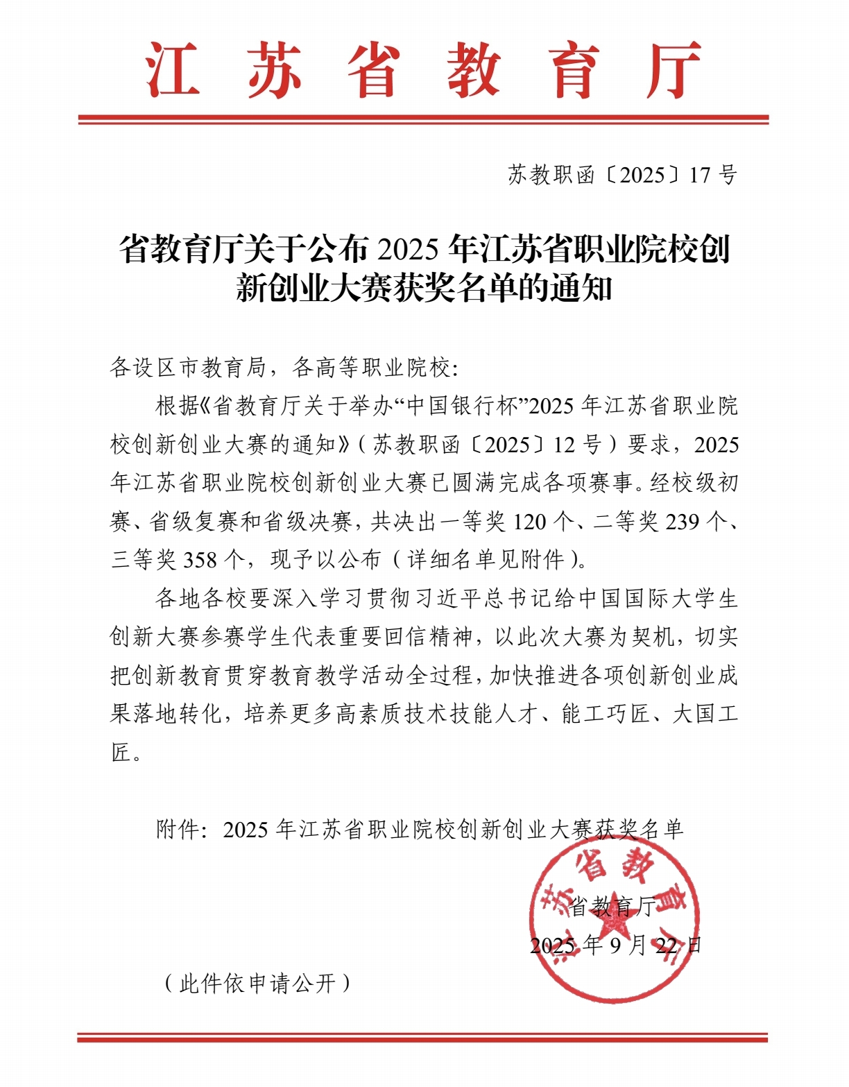 近日,“中国银行杯”2025年江苏省职业院校创新创业大赛在苏州工艺美术职业技术学院圆满落幕。我们参赛团队凭借扎实的项目实力与出色的现场表现,在赛事中斩获一等奖1项、三等奖3项。