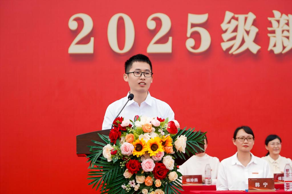 教师代表马克思主义学院徐峰博士、2017届校友代表江苏华晞科技有限公司软件部副部长柴宁宁先生及新生代表集成电路学院移动2501班陈妍同学先后发言,分享心得、传递祝福、展望未来。
