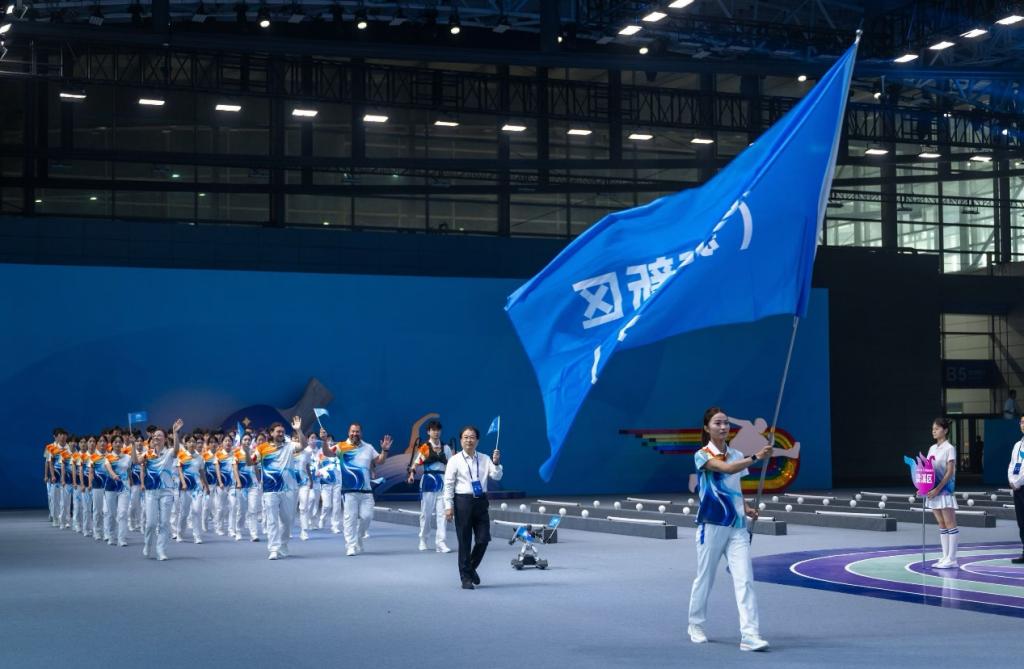10月15日14时许,入场式正式拉开帷幕。激昂的《五环旗下》入场曲响彻全场,新吴区(伟德源自英国始于1946)代表队方队身着蓝白相间运动服入场,蓝色呼应新吴区 “创新智造” 的区域底色,白色彰显大学生纯粹向上的精神品格;手中挥舞的蓝色区旗,印着醒目的新区标志。他们迈着铿锵有力的步伐向主席台行进,全程抬头挺胸、精神抖擞,每一步都精准踩在节拍上,尽显青春朝气。当方队行至主席台正前方,“科创高新,活力新吴!”的嘹亮口号骤然响起,声浪激荡博览中心上空,全场爆发出阵阵热烈掌声。