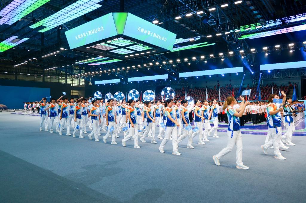 金秋送爽,运动逐光。10月15日,第十四届无锡市运动会开幕式在无锡市太湖博览中心隆重开幕,来自全市各区县的运动队伍、表演方阵齐聚一堂,共赴这场活力满满的体育盛会。我们40名优秀学子与区内国际友人代表、穿戴式机器人和7个3D全息风扇组成的无锡高新区(新吴区)代表方队精彩亮相。大学生们以整齐划一的步伐、昂扬向上的风貌和富有感染力的表现,圆满完成了开幕式方队展演任务,赢得了现场领导与观众的高度赞誉,充分展现了青年学子的卓越风采和学校的育人成果。