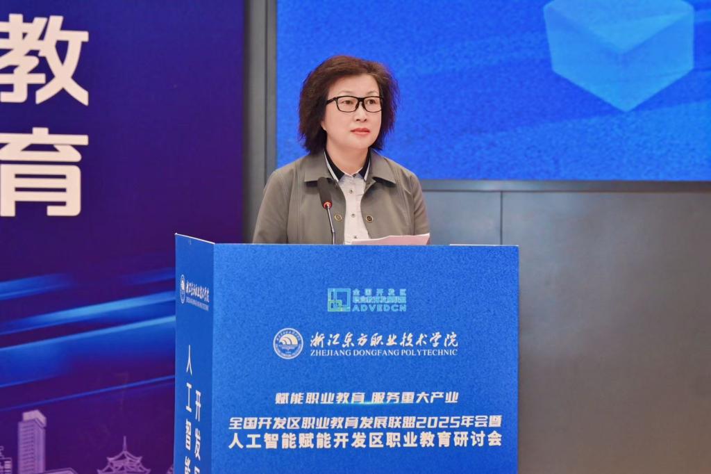 会上,温州市人大常委会副主任徐育斐发表致辞,系统介绍了温州以人工智能赋能职业教育的创新实践。长三角开发区协同发展联盟秘书长杜玉虎致辞,期待以此次会议为起点,共同绘就“产教深度融合、区域协同创新”的新画卷。浙江东方职业技术学院校长、党委副书记王佑镁致欢迎词。