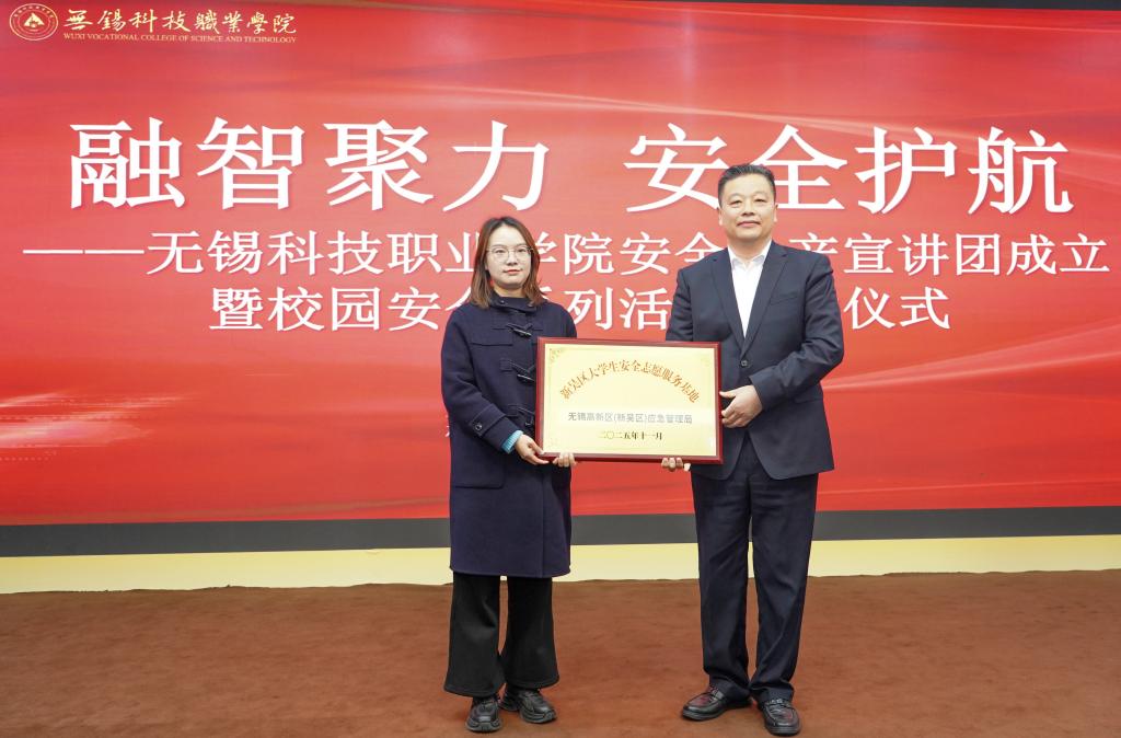 启动仪式上,新吴区应急管理局党委书记、副局长张凡明向学校授予“新吴区大学生安全志愿服务基地”,这一举措紧密联结校地双方,为宣讲团走出校园、开展常态化社会服务搭建了制度化实践平台。