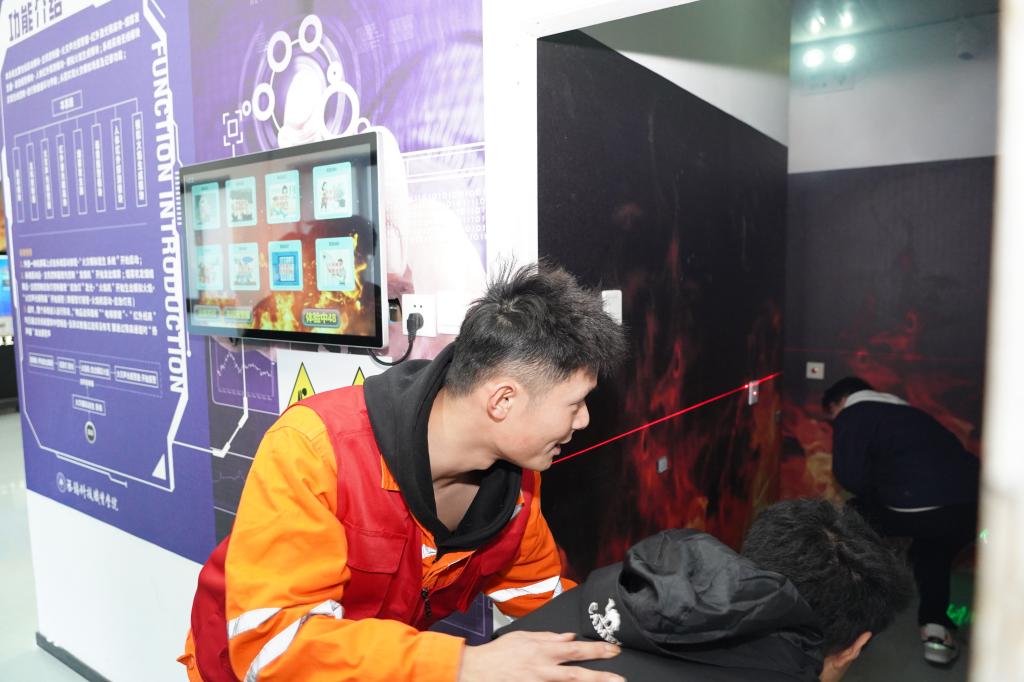 启动仪式后,宣讲团朱宇航老师围绕消防安全与应急避险开展了首场专题讲座。随后,师生移步安全教育基地,参与模拟灭火、VR 情景互动、消防水带连接、灭火器实操等沉浸式应急体验,在“做中学、学中练” 中提升实战能力与风险应对素养。