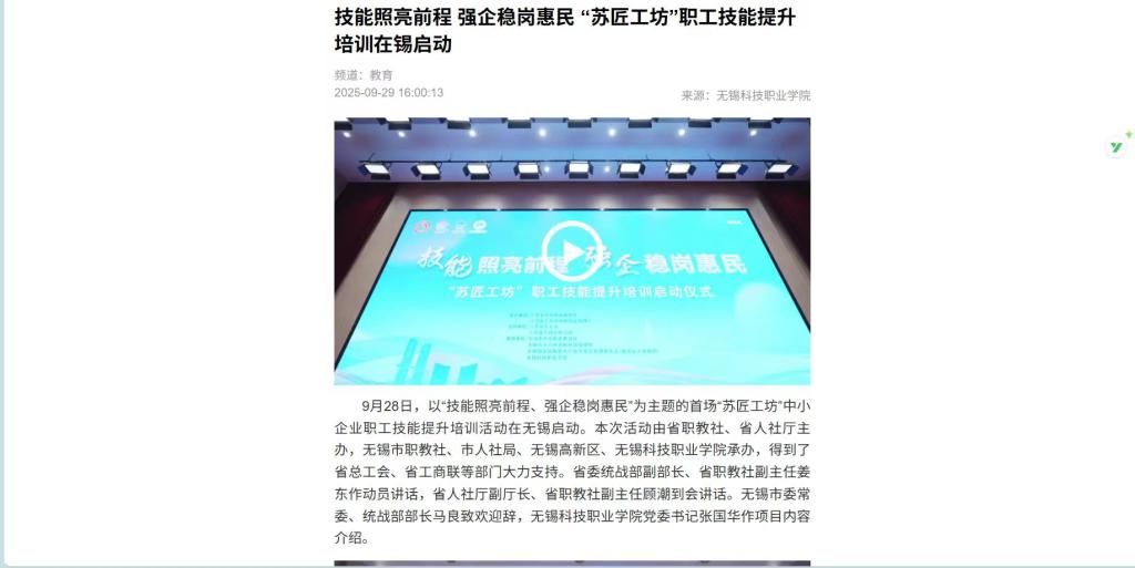 下一篇:新华报业网:技能照亮前程 强企稳岗惠民 “苏匠工坊”职工技能提升培训在锡启动