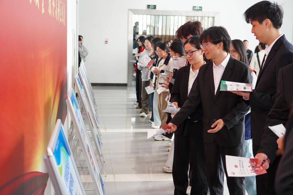 学生干部代表观摩学习禁毒、反诈宣传展板