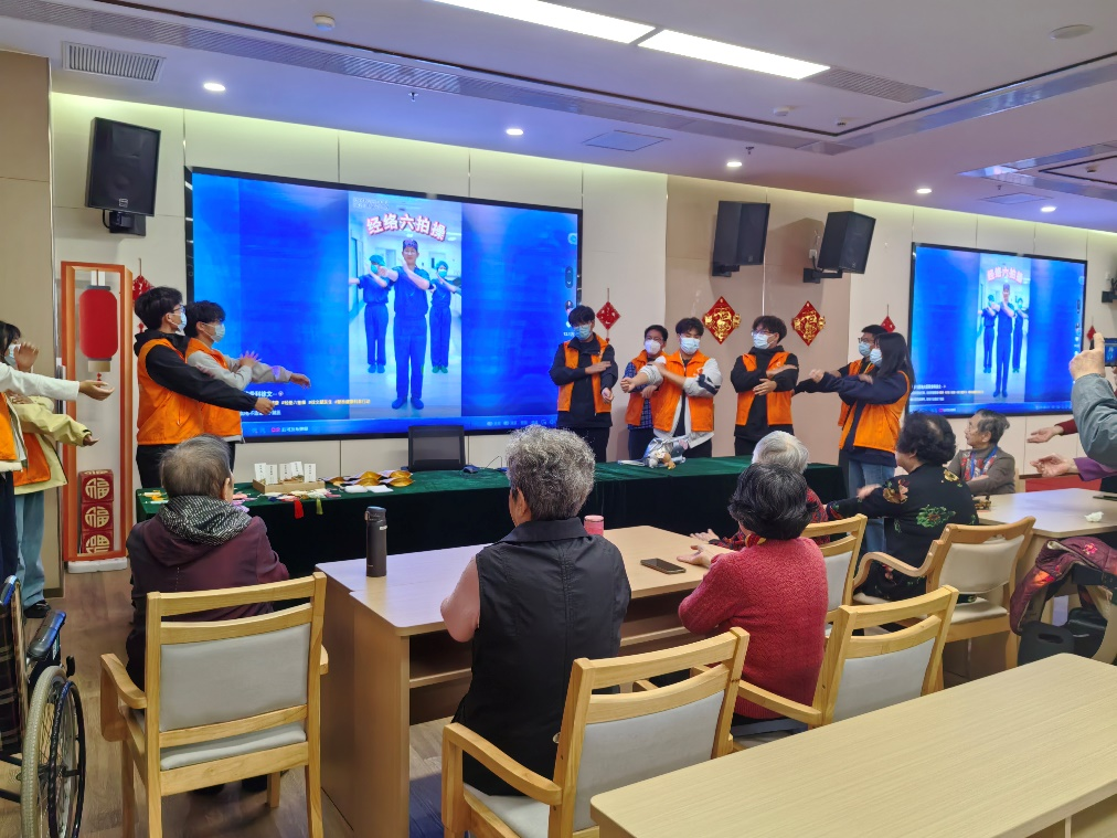 活动第二站来到旺庄乐享颐养中心。志愿者们提前备好干燥桂花、柑橘皮、艾草等材料,手把手教老人们制作养生香包;徐小燕老师带领老人们做起了健康养生操,节奏舒缓缓、耐心示范。颐养中心里欢声笑语与缕缕花香交织,暖意融融,老人们深深感受到了青年志愿者们的爱心和敬意。