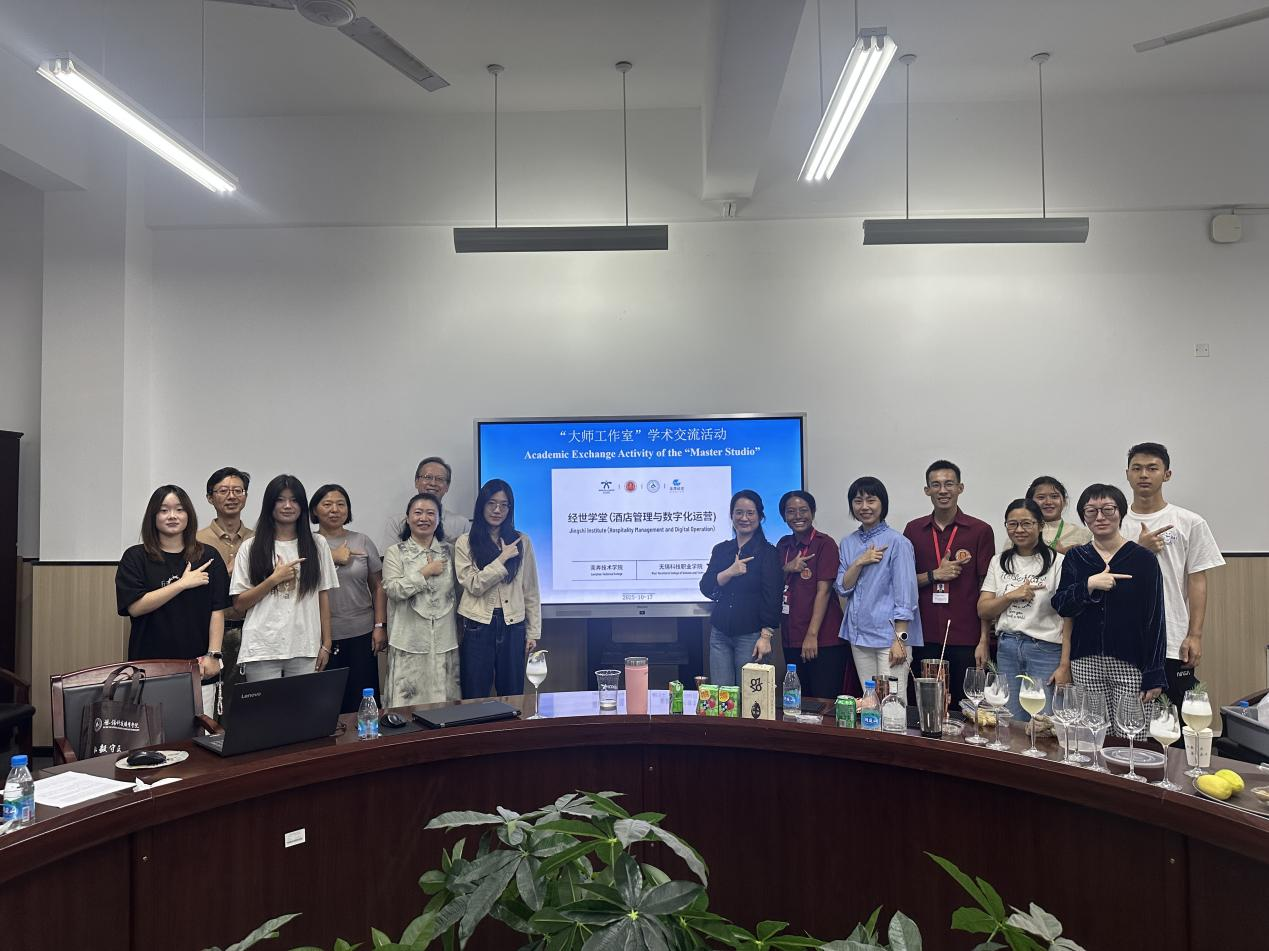 10月15日,泰方尼塔亚老师与塔塔索博尔老师面向我们酒管专业一百余名学生开展了鸡尾酒实践教学,中泰双方于10月17日,在学校大师工作室举办了线下国际学术交流活动。泰方尼塔亚老师以《酒店环境中的趣味服务》为题开展讲座,并与我们教师就“酒店管理与服务创新”进行深入研讨。文化旅游学院钱万万老师分享了我们在现代学徒制改革中的探索。尤为引人注目的是,泰方教师将《Food and Beverage》核心课程“搬”到现场,进行了鸡尾酒调制与果雕等实操展示,中方师生积极参与互动,再现了此前线上交流中探讨“泰式草本饮料”与“中国茶饮”融合的场景,体现了双方合作的一脉相承与持续深化。