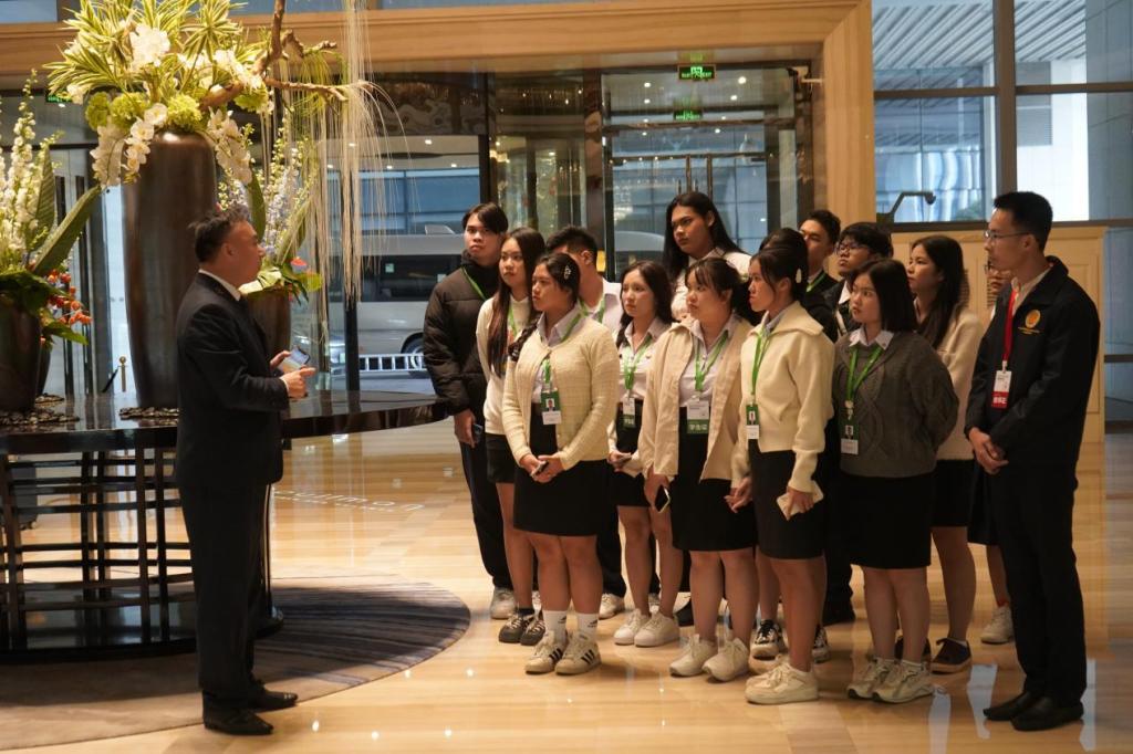 10月20日,留学生团组前往校企合作基地——无锡新湖铂尔曼大酒店开展企业研学活动。学生们直观感受了中国高端酒店业的运营标准与服务文化。该酒店作为我们深度合作企业,总经理于安先生受聘为酒管专业产业教授,企业导师深度参与课程教学与人才培养方案审定。特别值得一提的是,铂尔曼酒店的人才与文化发展总监陈晓倩女士进校参与留学生专业课程《酒店人力资源管理》的教学,得到泰国师生的一致好评。
