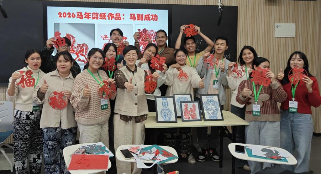 自10月13日泰国团组抵达起,留学生“技能创新班”展开了为期一月的全方位学习之旅。课程设置紧密对接酒店管理与数字化运营前沿,涵盖了《前厅服务与数字化运营》、《酒店人力资源管理》等核心专业课程。同时,深度融合语言学习与文化浸润,通过《对外汉语》、《中国传统文化》等课程,以及茶艺、剪纸与无锡泥人非遗体验、中国象棋、乒乓球等特色技能实践,构建了“专业赋能、语言沟通、文化理解”全方位的培养课程体系,有效促进了学生综合素养的全面提升。