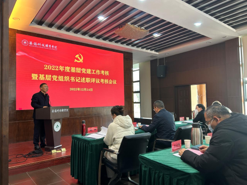 在听取全部八个基层党组织负责人的汇报后,张国华作总结讲话。他指出,一年来,各基层党组织深入贯彻落实新时代党的建设总要求,坚持“围绕中心抓党建、抓好党建促发展”,主动扛起党建工作的主体责任,在保障学校稳定、推进改革发展各项事业和疫情防控等工作中,充分发挥了战斗堡垒作用,以实际行动推动了学校高水平建设取得新进展。在就述职情况进行点评后,张国华对下一阶段的工作提出三点要求:一是要继续深入学习贯彻党的二十大精神,进一步推动党对教育工作的全面领导,以高质量党建引领高水平建设;二是要统一思想认识,从严从紧落实疫情防控措施,坚决筑牢校园安全防线、守好师生安全底线,平稳有序做好学期末的各项工作;三是要守土有责、守土负责、守土尽责,持续推动党建与业务深度融合,围绕第三次党代会确定的“三步走”目标,奋力拼搏、不畏挑战,凝心聚力走好学校高质量发展之路。