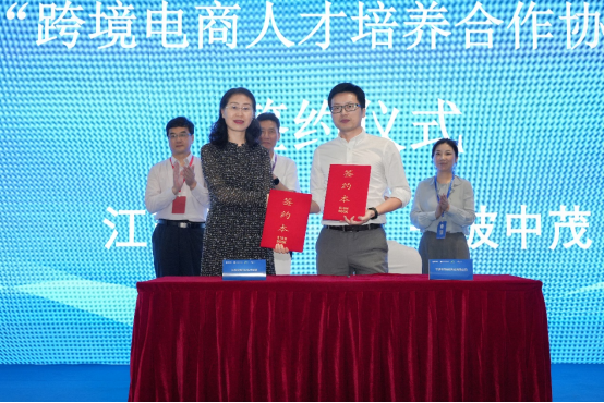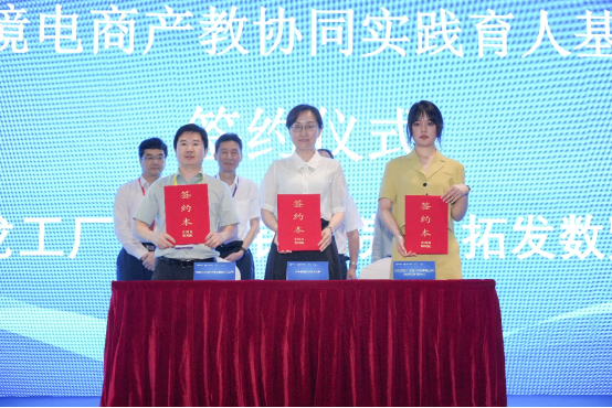 最后,举行了跨境电商人才培养项目的签约仪式,产教联盟、江苏信息职业技术学院和无锡城市职业技术学院分别与重点合作单位签订人才培养协议。