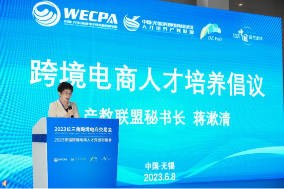 产教联盟秘书长蒋漱清教授从构建优质跨境电商人才发展生态环境、搭建政行企校多方参与的产学研合作基地等方面发表了《跨境电子商务人才培养倡议书》,旨在通过政行企校合力共谋育人机制改革,为无锡跨境电商产业高质量发展提供人才支撑。